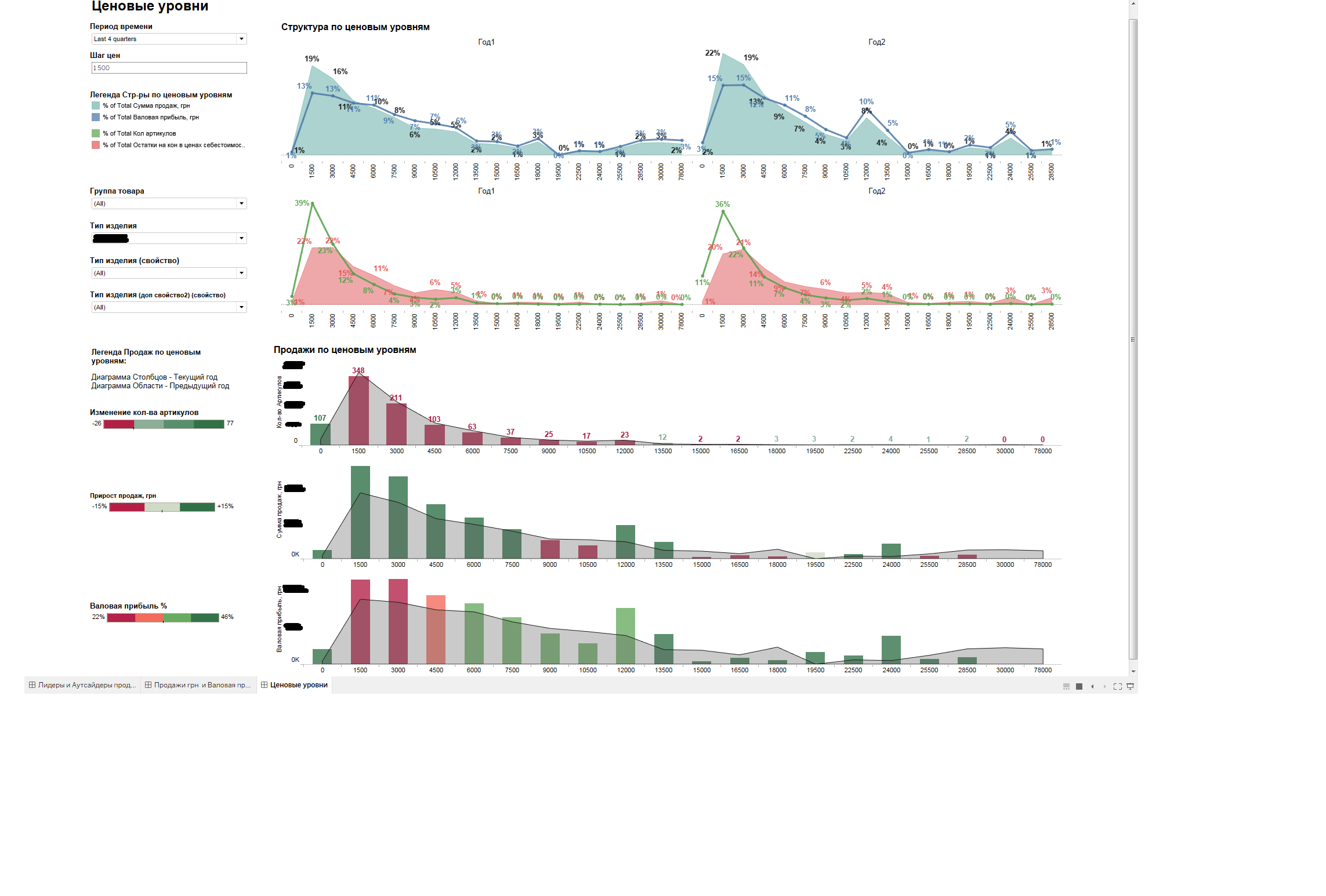 - Анализ распределения в существующем товарном наполнении ценовых уровней и их полноты для покрытия потребностей разных типов клиентов. Предложения по вводу/выводу ассортимента.