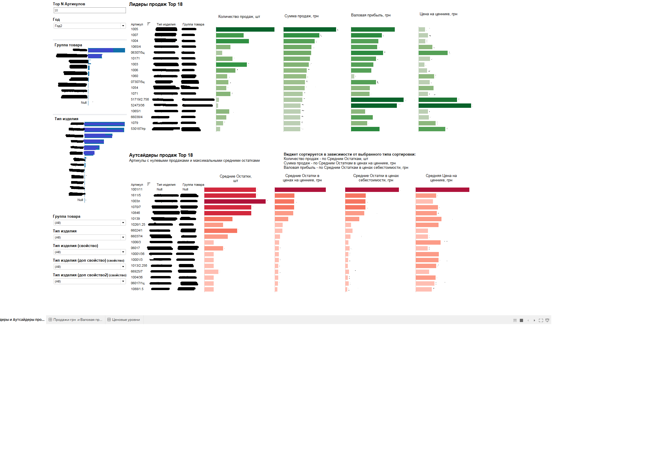 · Проблемные позиции с низкими продажами · Артикулы, на которых теряем/морозим деньги из-за отсутствия продаж Ценовые уровни в продажах · В какой цене дефицит/профицит ассортимента (артикулов), соответственно какие ценовые уровни можно расширить, а какие сузить · Какая цена товара является ключевой в зарабатывании прибыли и возможно расширение предложения по ассортименту · Комплексность предложения «на разный кошелек» и кто основной клиент Ценовые уровни в остатках · Товарный запас по ценовым уровням (на сколько месяцев продаж хватит товара в той или иной цене) · В каких ЦУ необходимо «почистить» магазин, а в каких увеличить запас Предложения по автоматизации бизнес-процессов по управлению запасами · На основе разработанных отчетов, были даны рекомендации по автоматизации бизнес-процессов по управлению запасами компании. |